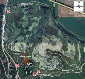 Repairs are being conducted on the wooden walkway near the Kootenay-Columbia Discovery Centre, in Corn Creek Marsh. For the safety of all, we have closed the trails that lead into the work zone.